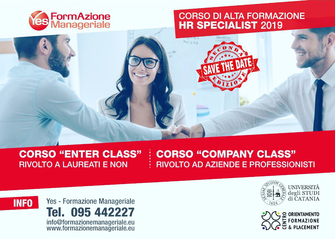 Il COF Centro Orientamento, Formazione e Placement dell’Università di Catania in collaborazione con Yes Management srl organizza un corso di Alta Formazione rivolto a studenti, aziende e professionisti che vogliano acquisire conoscenze e competenze specialistiche inerenti il settore delle Risorse Umane in Azienda.