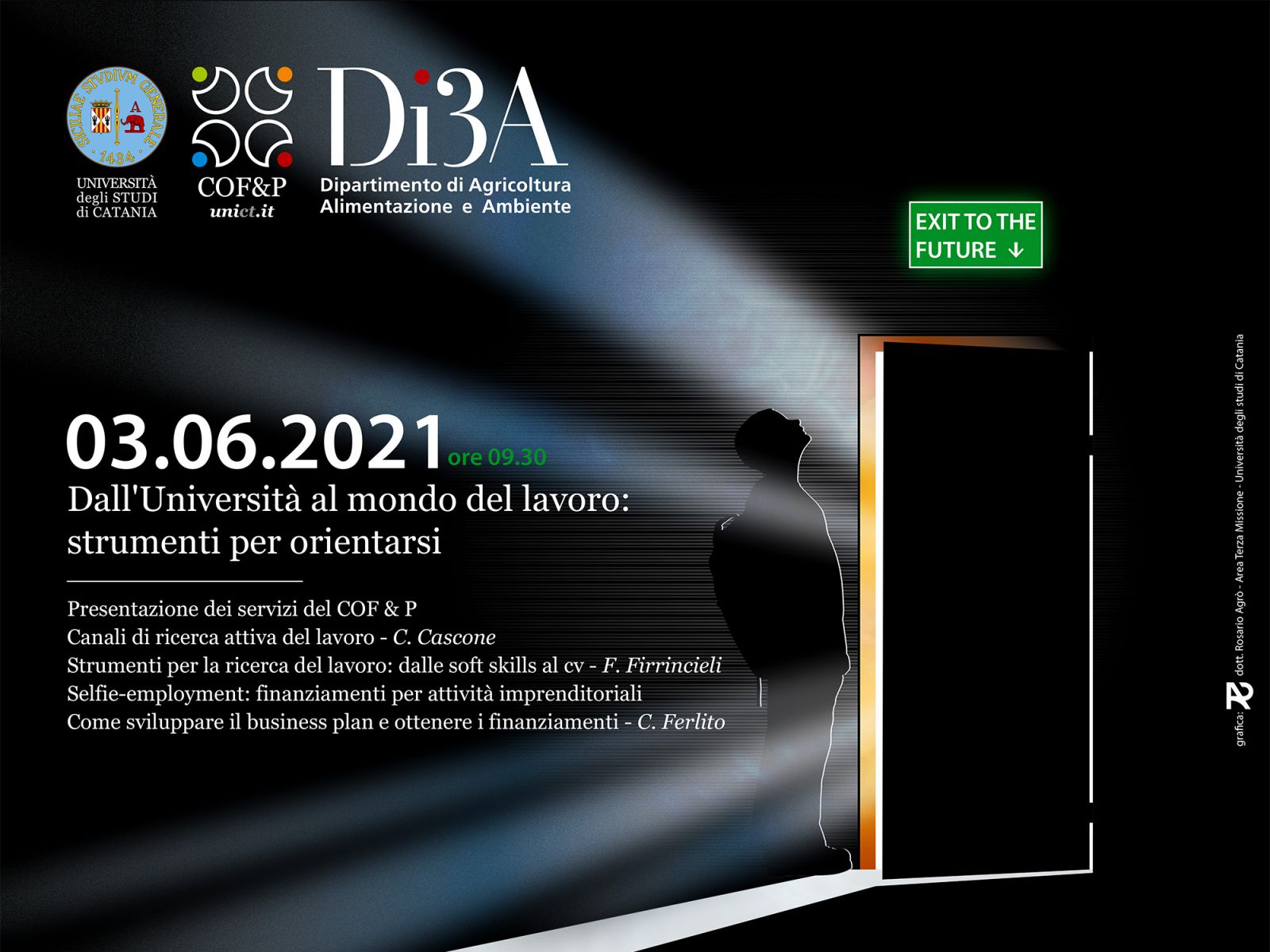 Dall'Università al mondo del lavoro: strumenti per orientarsi Giovedì 3 giugno a partire dalle ore 09:30 si terrà il webinar Dall'Università al mondo del lavoro: strumenti per orientarsi organizzato daL COF & P e dal Di3A. Condividi Facebook Twitter Whatsapp Telegram Email