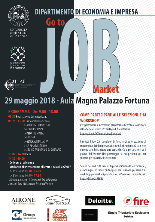 Martedì 29 maggio si svolgerà il Recruiting Day del Dipartimento di Economia e Impresa, GO TO JOB MARKET.